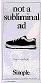 Simple shoes ads are exactly what Gnu's would running be if Gnu made shoes. The new ad? "not a subliminal ad," says the headline. Then in smaller type, below the shoe the words, "buy it asshole." Mmm, the sweet taste of honesty in advertising. It's such a rarity.